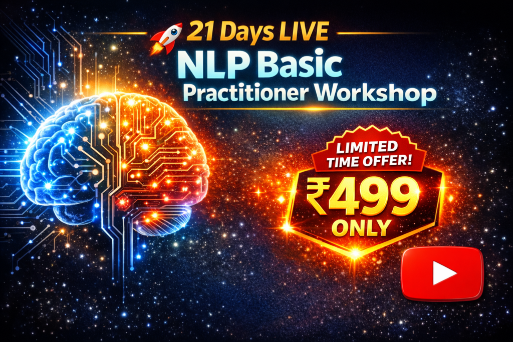 21-Day LIVE NLP Basic Practitioner Workshop. Do you ever notice how easy it is to upgrade a phone… …but almost nobody talks about upgrading the brain that runs their entire life? We spend thousands of rupees on: • Faster devices • Better apps & tools • Productivity hacks Yet we expect the same brain patterns […]